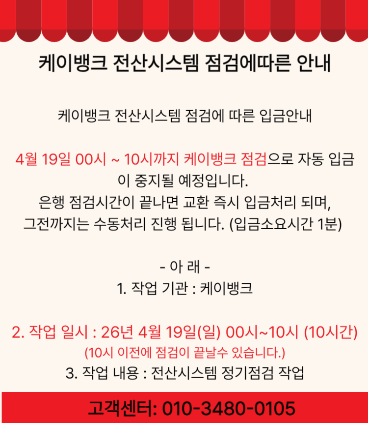 매입은 24시간 운영되며 입금만 점검시간 이후에 처리됩니다.